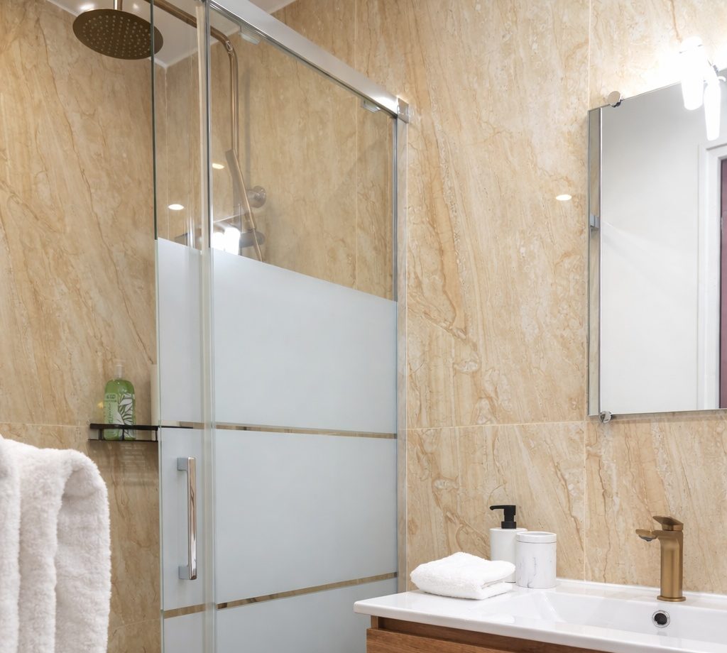 - Douche pluie, avec jets hydromassantes et Hammam.