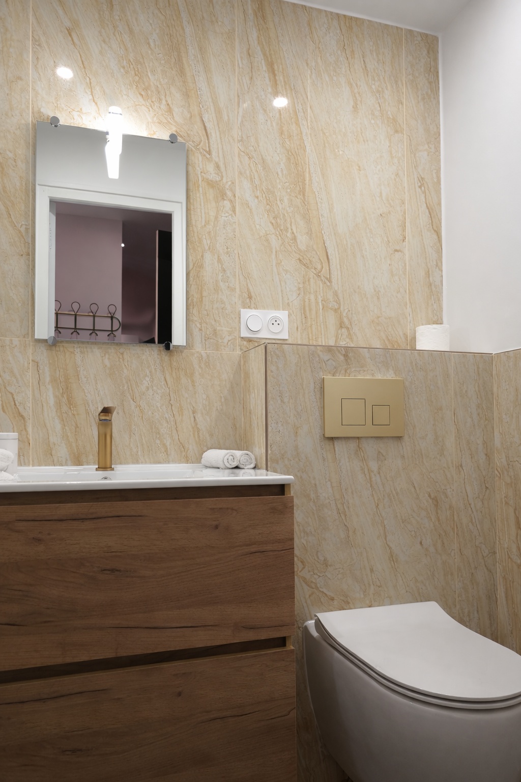 *PMR: Rez-de-chausée, Largeur de la porte supérieure à 80cm, hauteur du lavabo et des toilettes, et siège de douche."